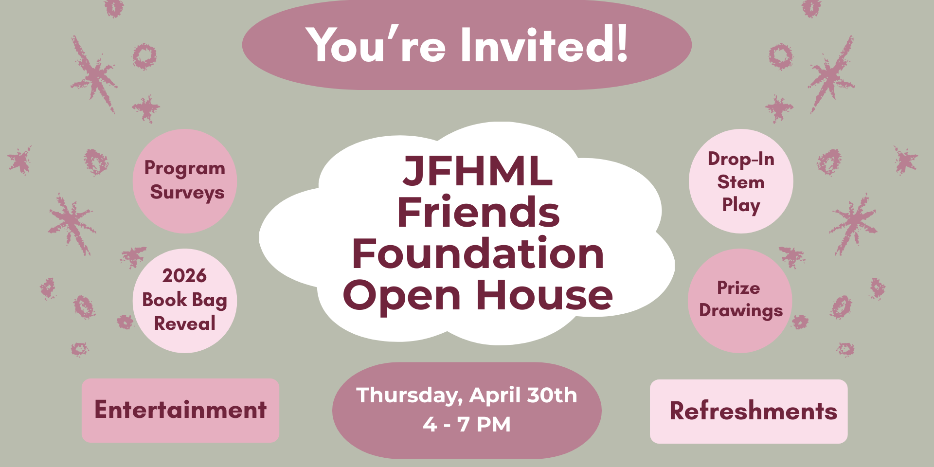 We will have Friends members to answer your questions, a door prize, light refreshments, entertainment, activities for the kids, and library merch! Plus, tell us what events and programs you would like to see at the library